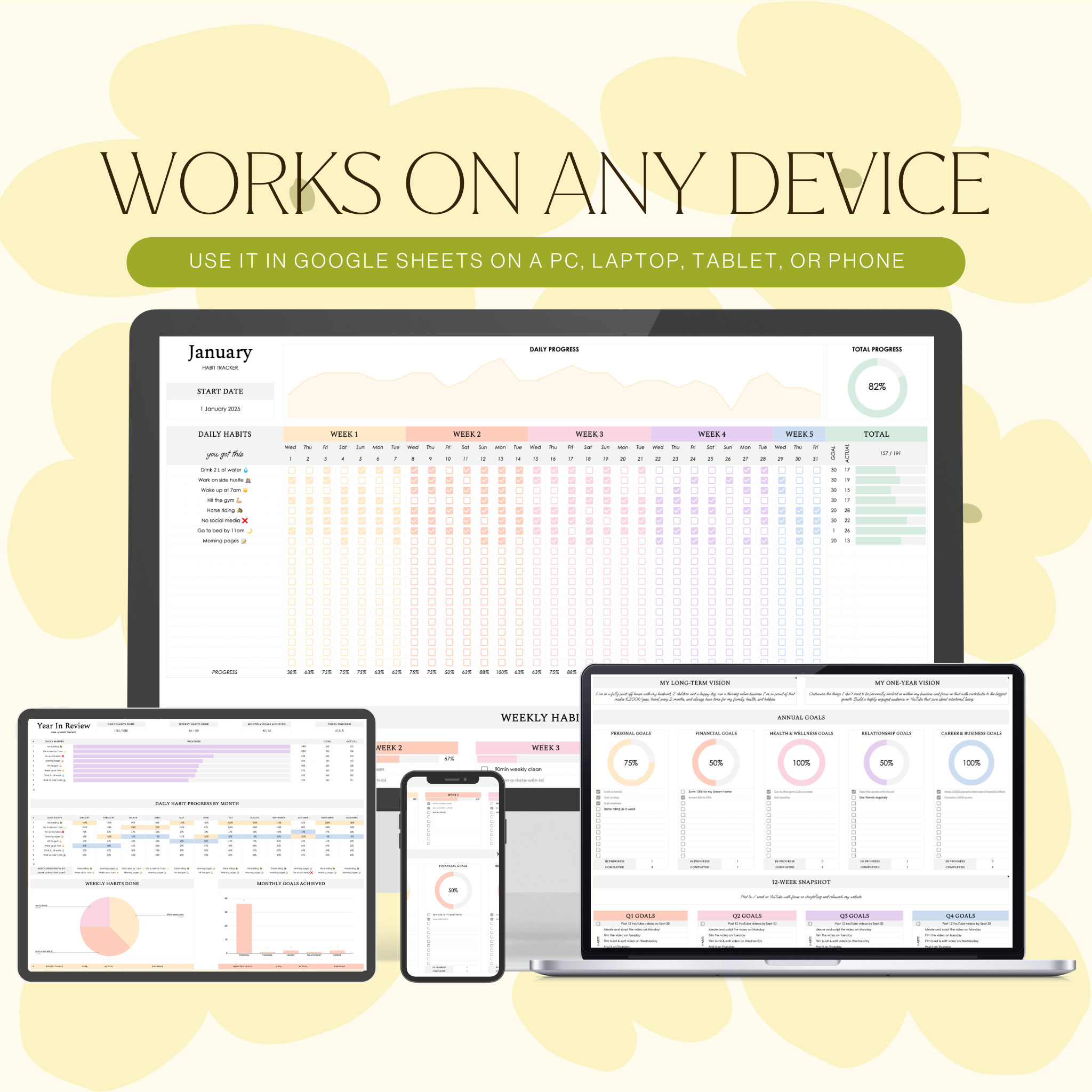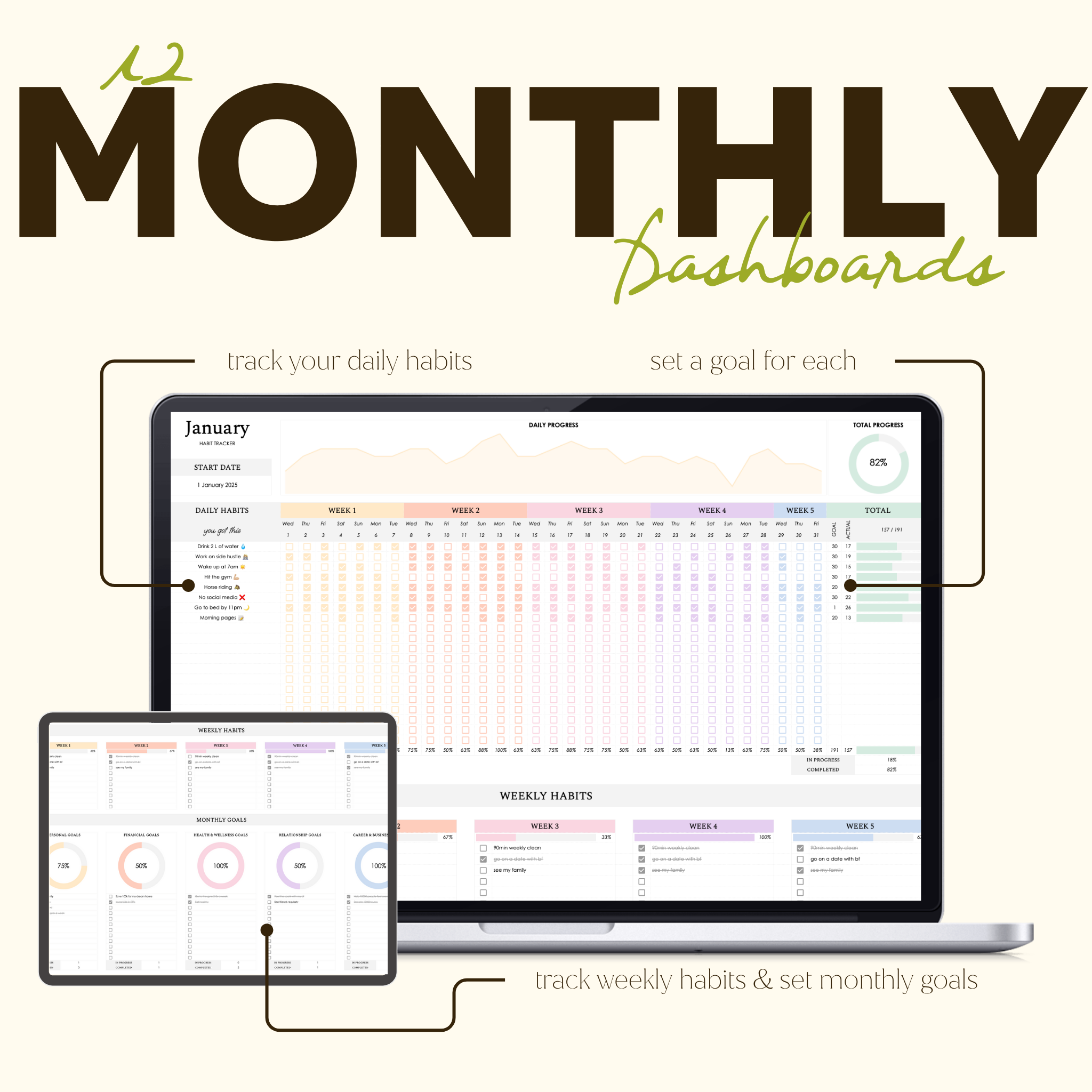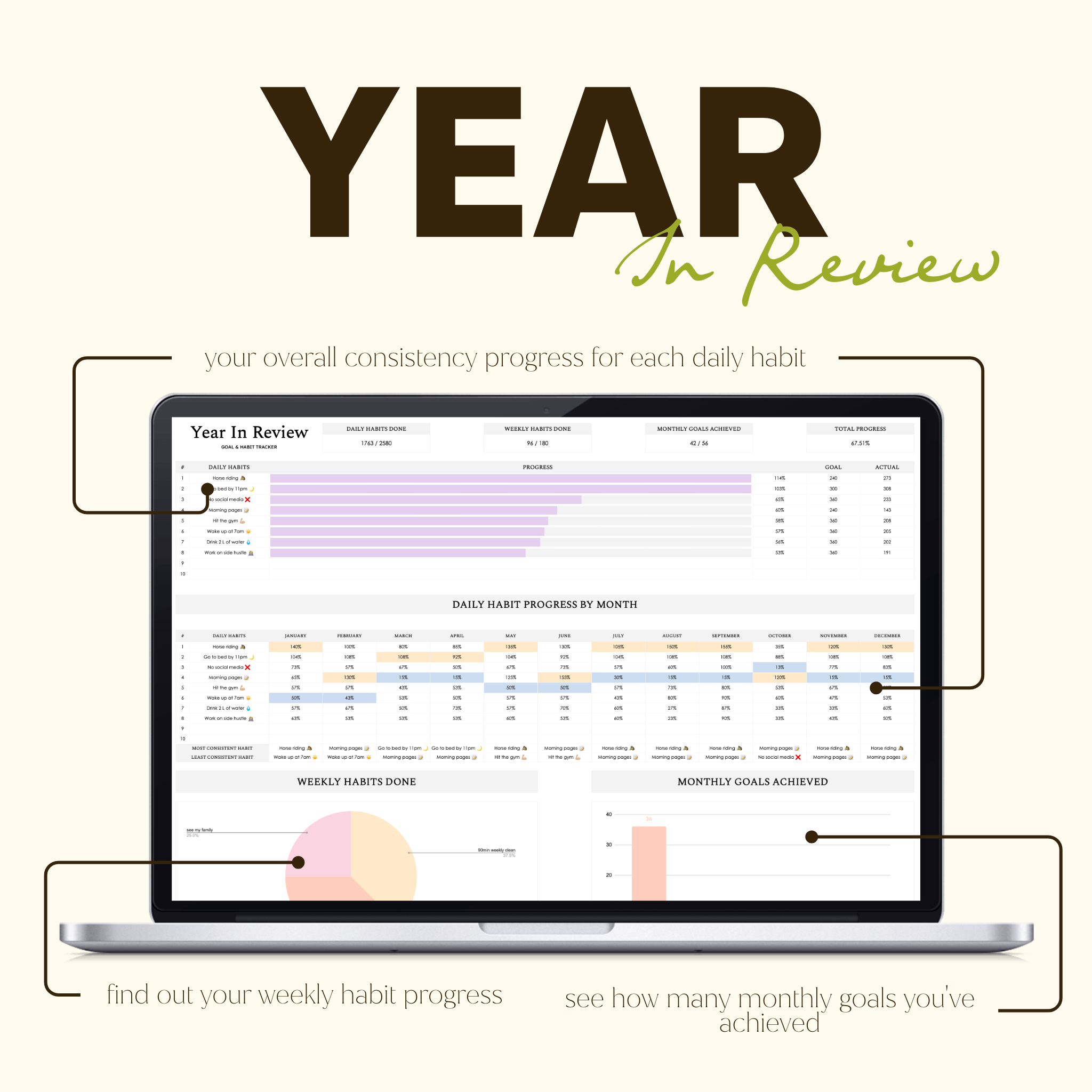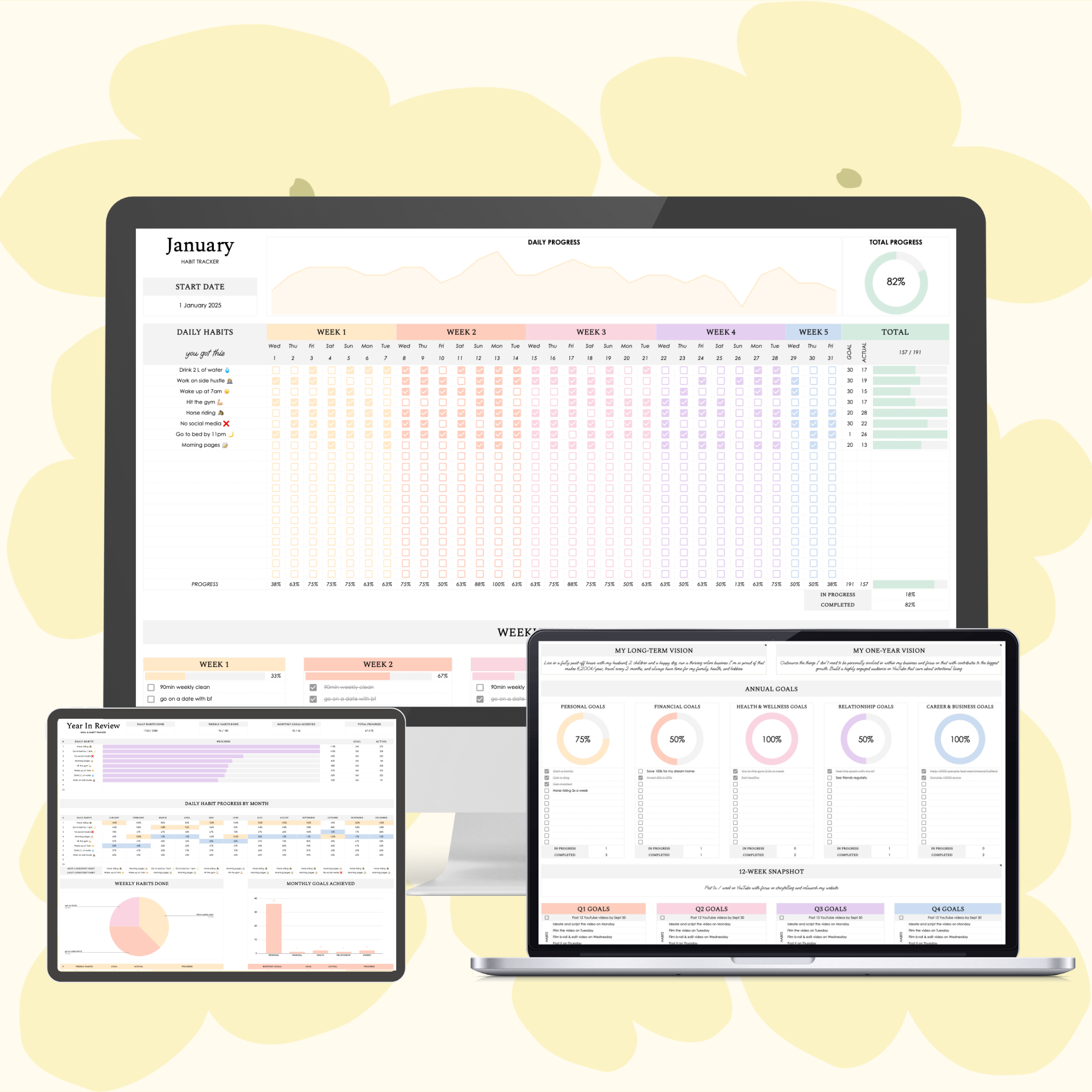 This goal & habit tracker is built to help you stay consistent, focused, and inspired to become the best version of yourself one day at a time.